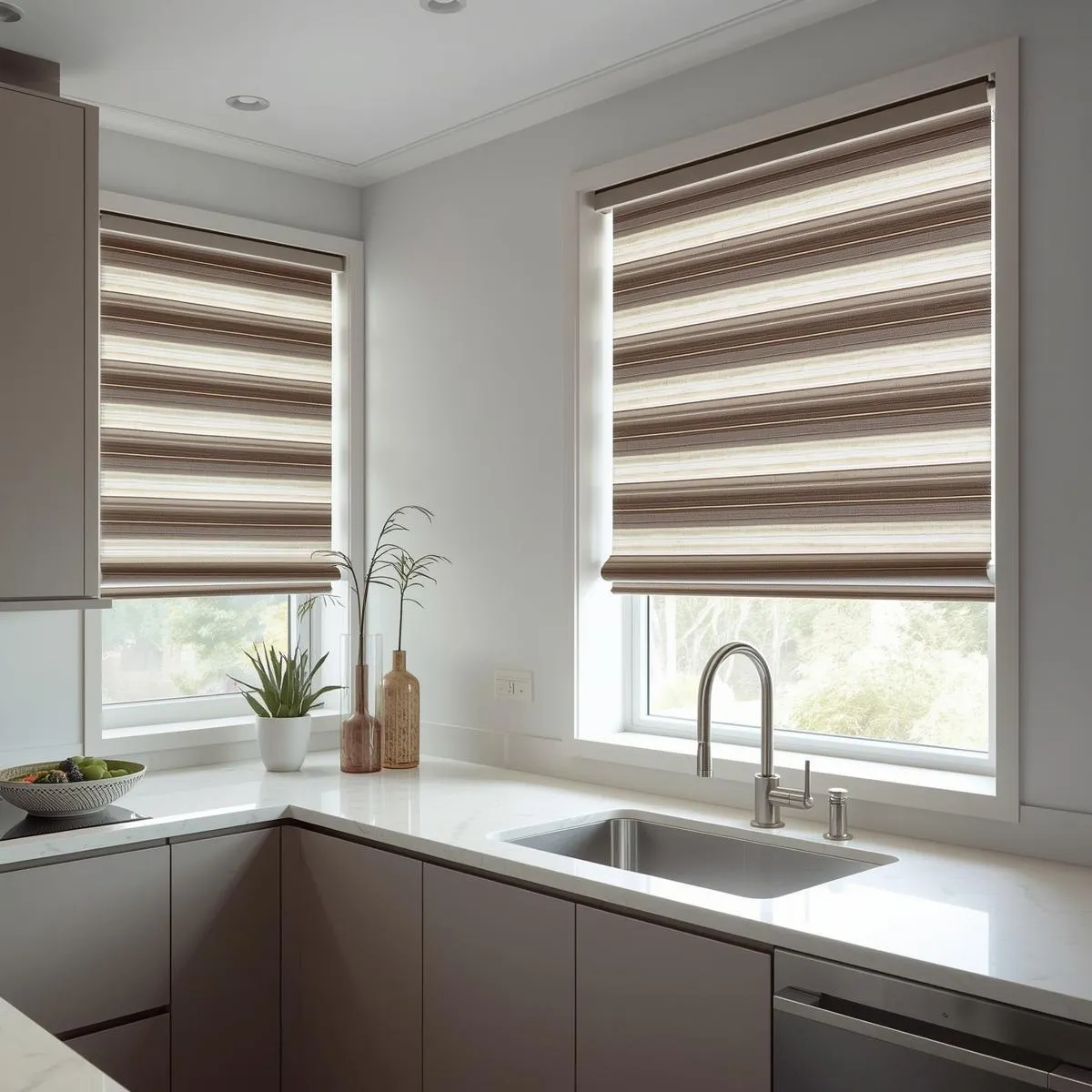 Explore our versatile collection of shades, including roller, zebra, blackout, and motorized options to fit your lifestyle.